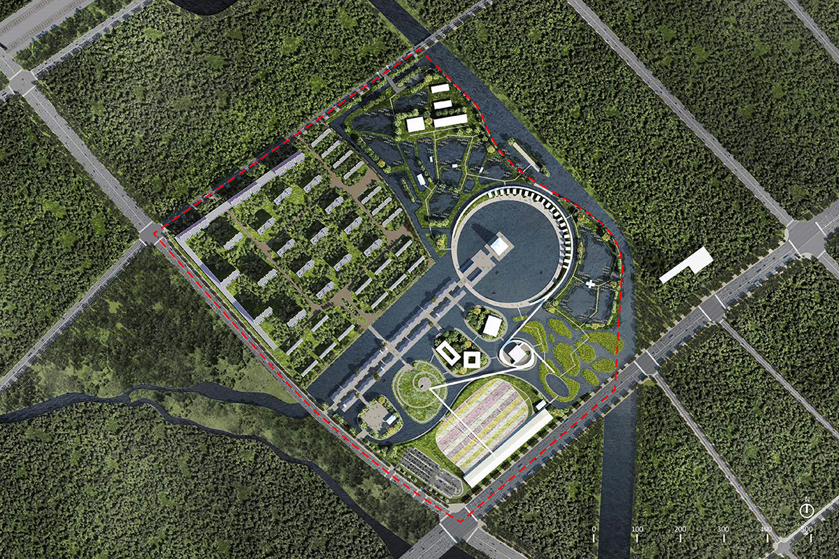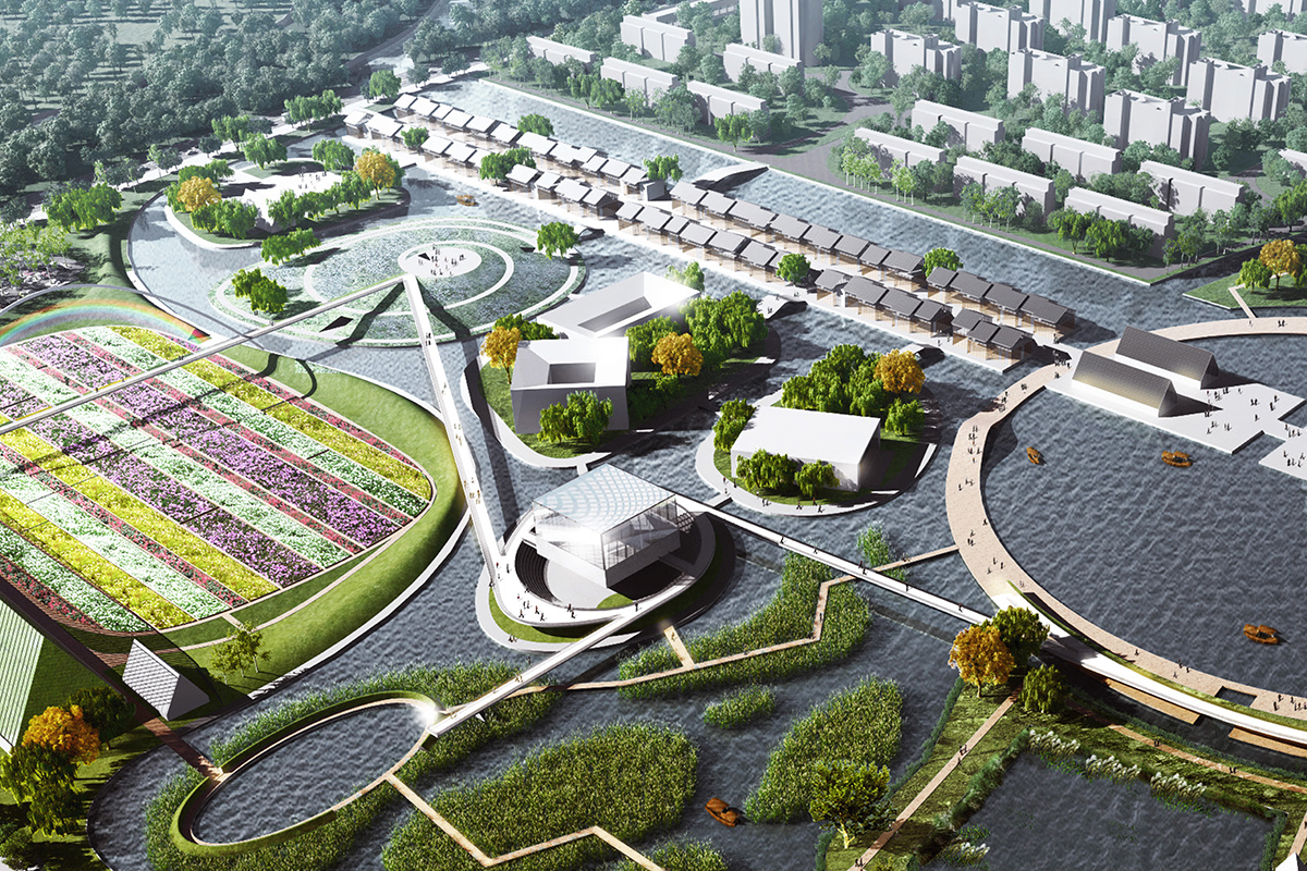 The project is based on the unique wetland landscape resources found on the site, in addition to a non-polluting, low-emission organic agriculture industry and unique, creative recreational facilities—all of which enable the construction of an ecological and cultural tourism base.